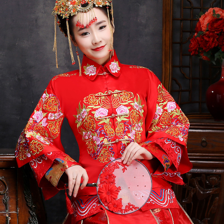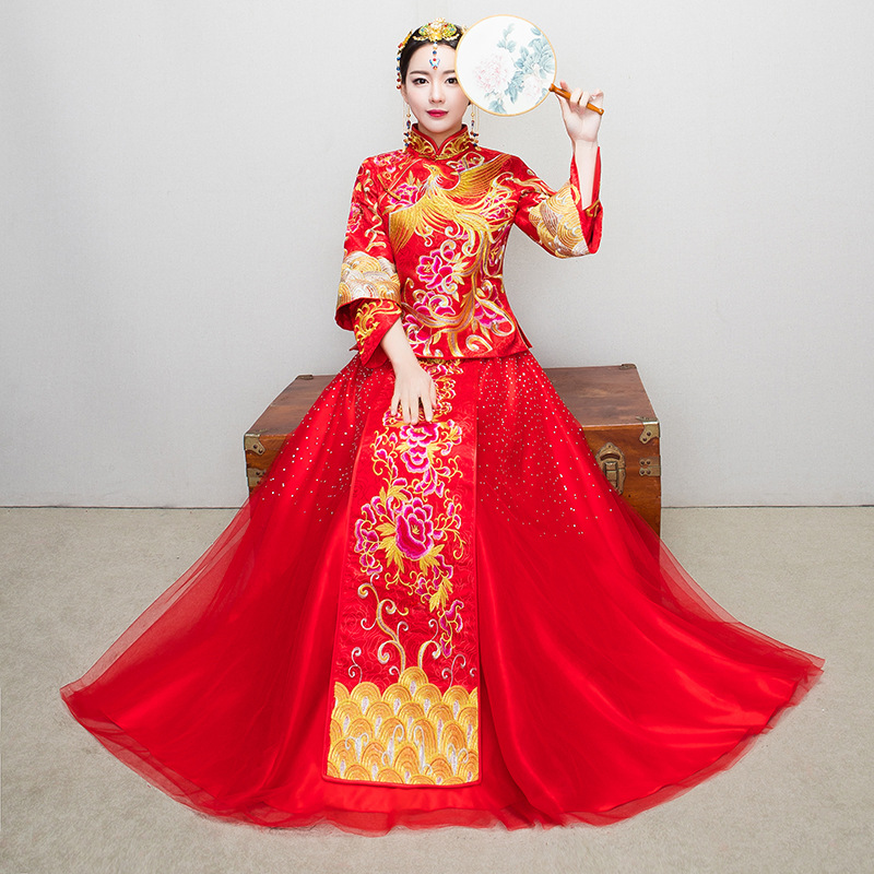 2018款中式秀禾服新娘婚纱礼服 中式婚礼结婚秀禾服结婚敬酒礼服-火