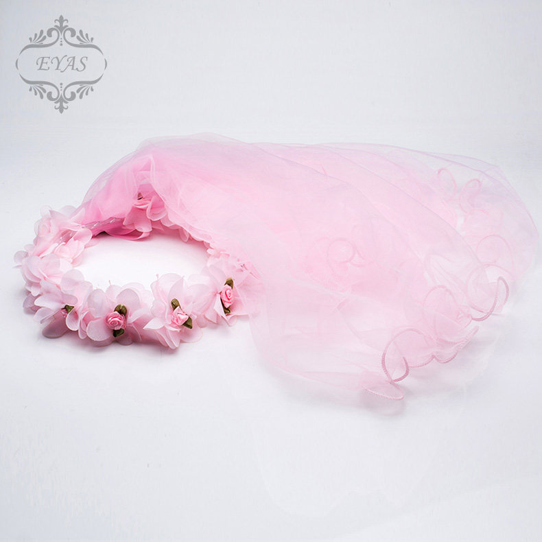儿童节日花环头饰公主头纱花朵女宝宝网纱发箍婚纱发饰发卡小女孩