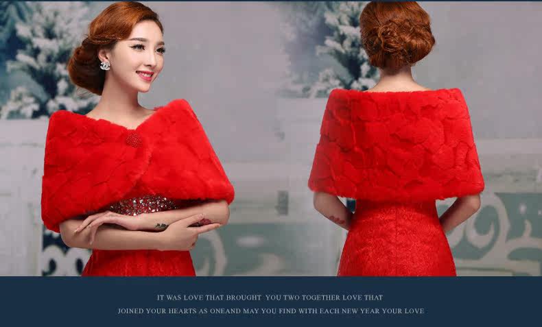 2015新款毛披肩婚纱披肩礼服旗袍伴娘结婚外套新娘披肩红白色秋冬