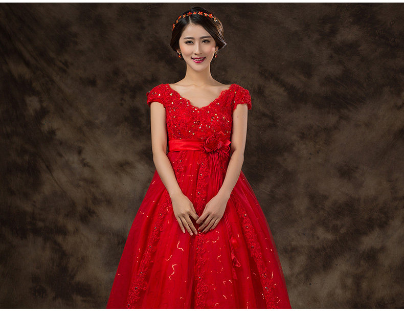 婚纱礼服2016秋新款孕妇高腰新娘婚纱齐地胖mm加大码V领绑带显瘦 -
