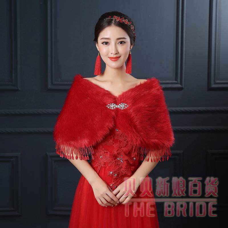 2016新款毛披肩婚纱披肩礼服旗袍伴娘结婚红色新娘披肩白色秋冬季价