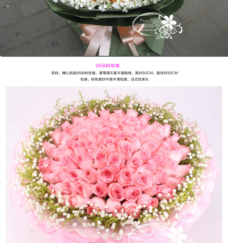 花速递 99朵红玫瑰10寸蛋糕 时尚馈赠 广东 湛江 茂名 肇庆 惠州 中国