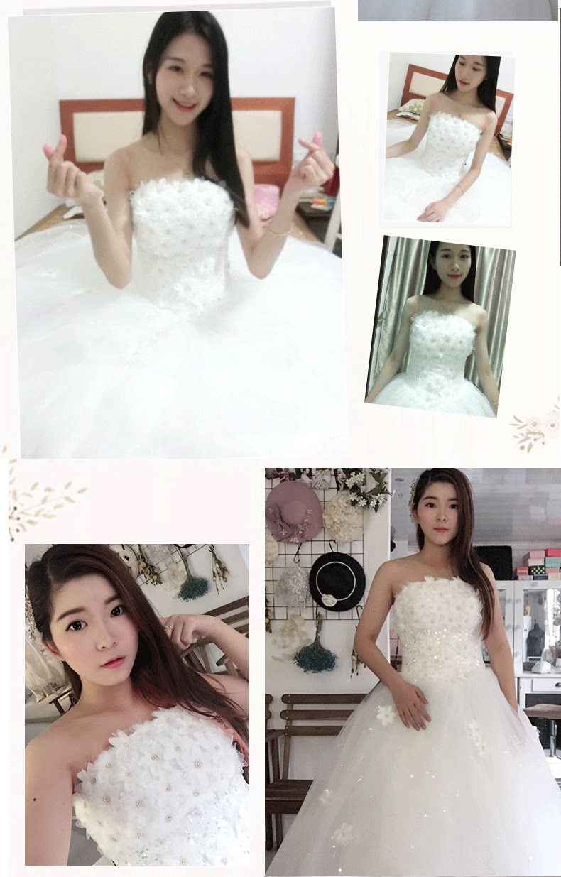 红色婚纱礼服新娘绑带抹胸婚纱2017新款孕妇婚纱高腰韩式韩版价格
