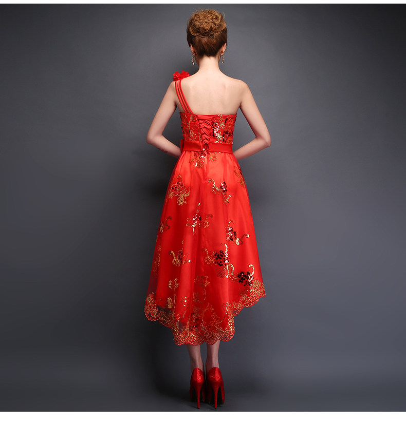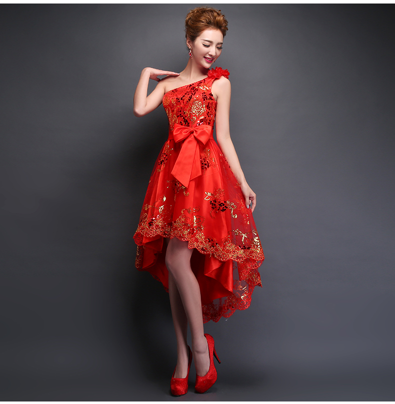 婚纱礼服2015春夏季新款敬酒礼服旗袍女新娘红色短款礼服宴会晚装
