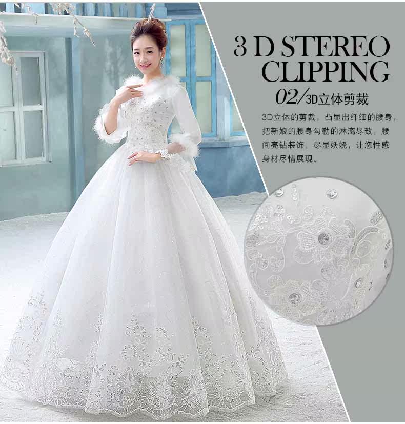 冬季婚纱礼服2015新款韩版修身新娘长袖毛领齐地加厚孕妇冬款婚纱