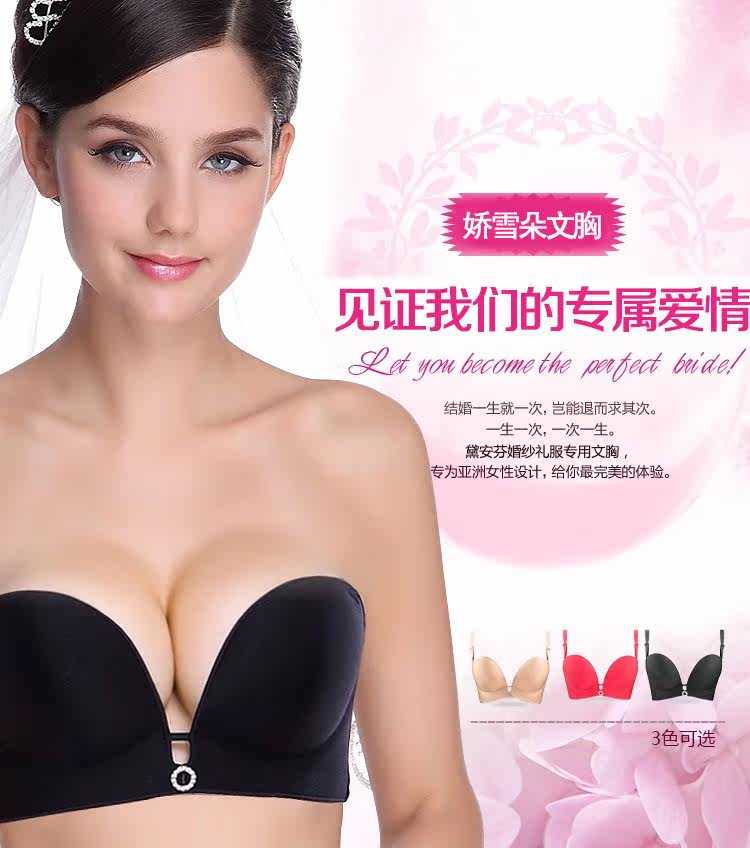 娇雪朵一片式隐形文胸二分之一杯无痕聚拢婚纱礼服内衣 -狂欢节购物