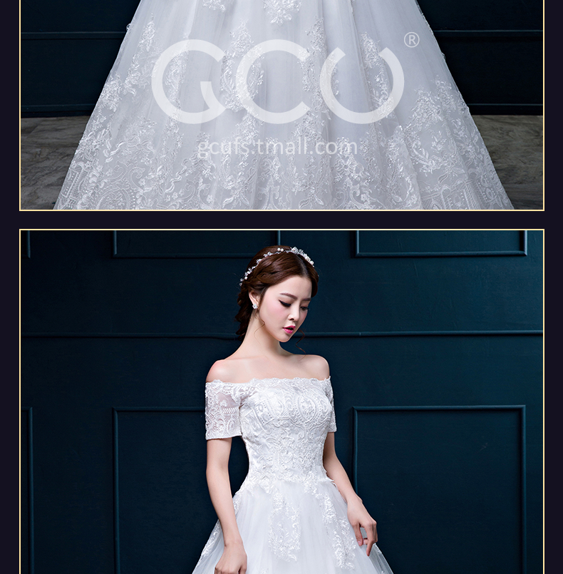 婚礼服简约修身新娘一字肩齐地显瘦新娘婚纱 -全网比价 武汉婚纱摄影