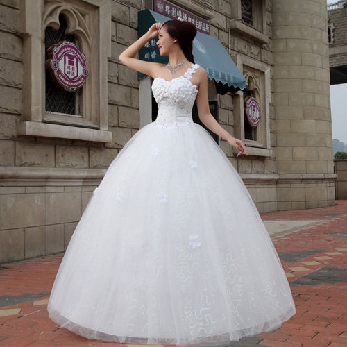 婚纱礼服2013新款韩版甜美公主单肩吊带花朵 齐地绑带婚纱A款