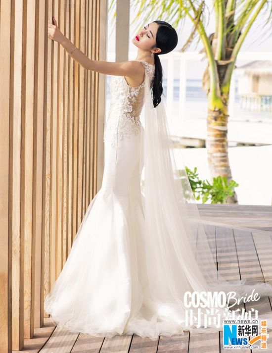秦岚唯美婚纱大片 裹蕾丝鱼尾裙舞动娇美身姿