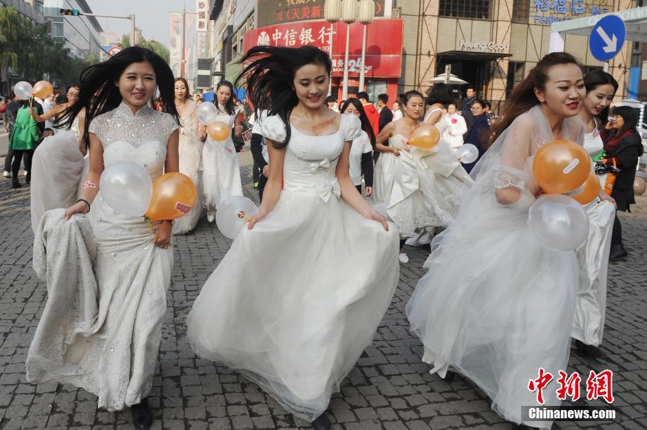 太原单身女青年穿婚纱为爱奔跑求 脱光