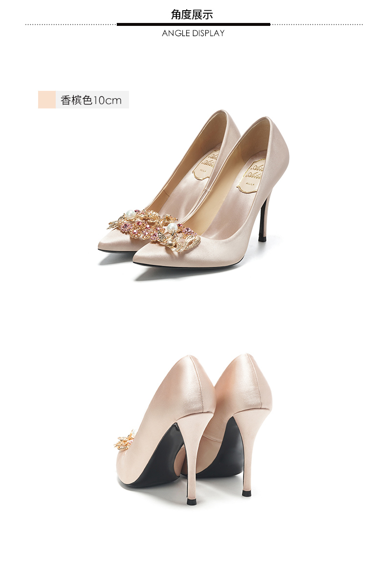 龙凤扣婚鞋女2018新款春季婚纱礼服新娘鞋香槟色高跟鞋细跟水晶鞋