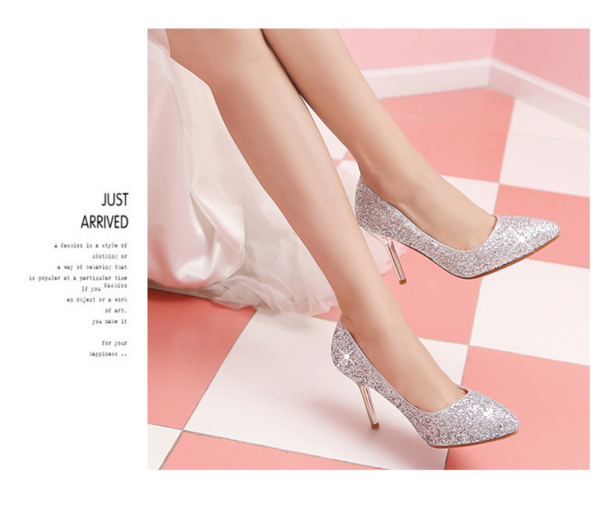 水晶婚鞋女2018新款亮片礼服宴会婚纱鞋尖头水钻银色伴娘细高跟鞋