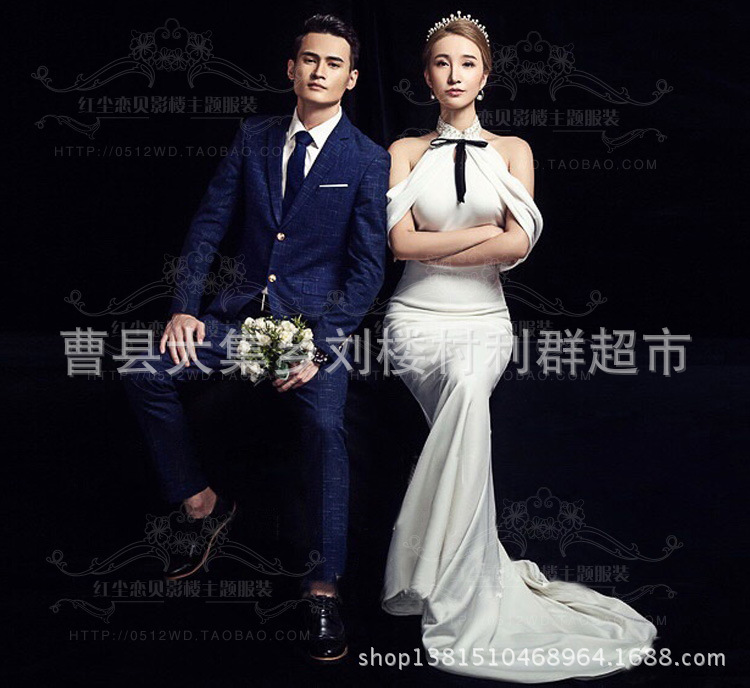 影楼主题服装 韩版情侣拍照礼服高领鱼尾婚纱影楼主题2018新款 阿里