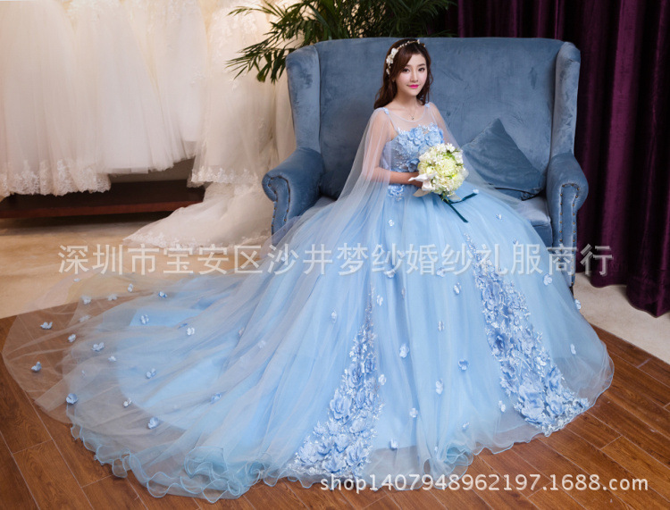 影楼主题服装 婚纱影楼主题服装2018新款蓝色新娘写真学生艺考走秀