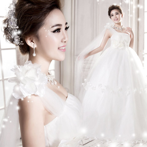 孕妇婚纱2015冬高腰婚纱礼服一字肩韩式新款显瘦大码齐地双肩v领价