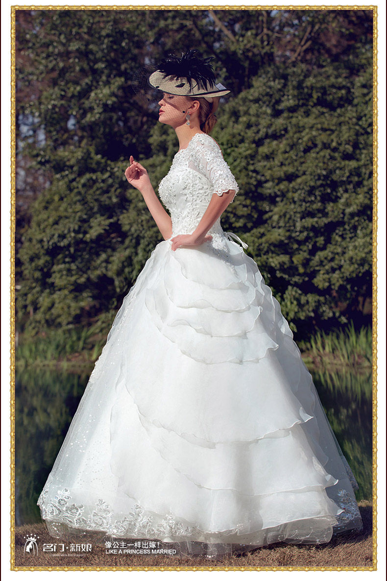 名门 婚纱礼服2015夏 国际名师设计一字肩蕾丝花朵婚纱礼服562 -婚