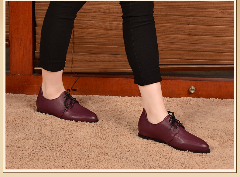 乐雅琦真皮妈妈鞋新款浅口单鞋平跟休闲皮鞋镶钻中年女鞋平底软底