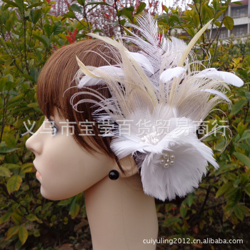 典雅时尚 羽毛新娘头花 婚纱拍照宴会表演头饰 -新娘头花 批发典雅