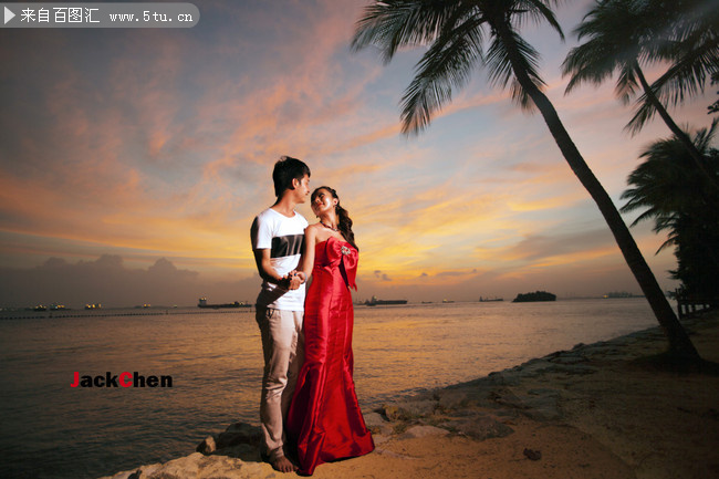 高清婚纱照片 海边情侣 高清图片 百图汇设计素材